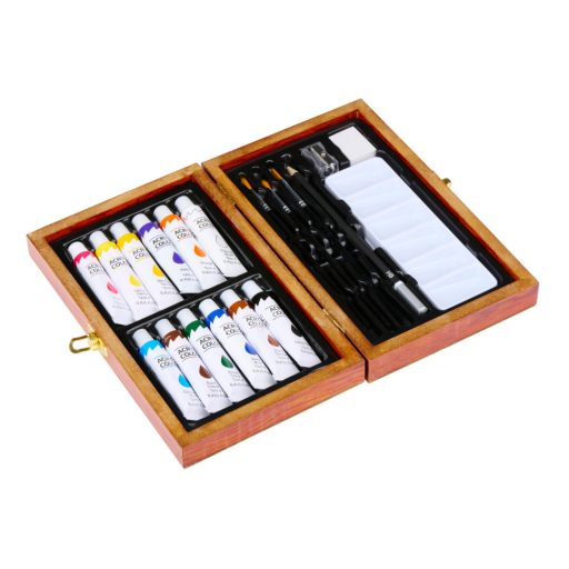 A fából készült tárolódoboz rendszerezetten és használatra készen tartja festőanyagait. Tökéletes ajándék kreatív elmék számára, vagy kiegészítheti saját művészi eszköztárát. Kezdje el következő remekművét az Artico festőkészlettel!